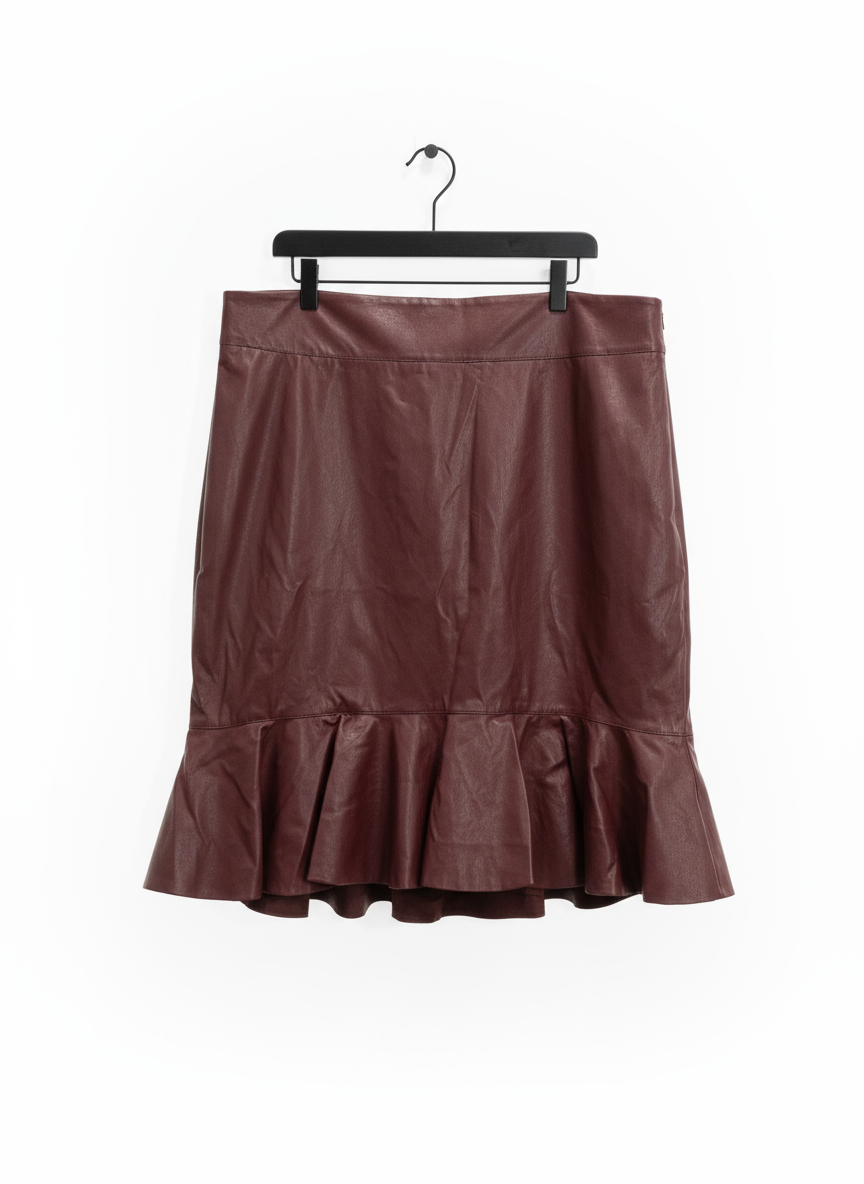 Introducing Muva, the epitome of luxury and sophistication. This burgundy vegan leather bell skirt exudes elegance and exclusivity. It offers a timeless piece that effortlessly elevates any outfit. Slimming silhouette and rich color make it a must-have for every fashionista.